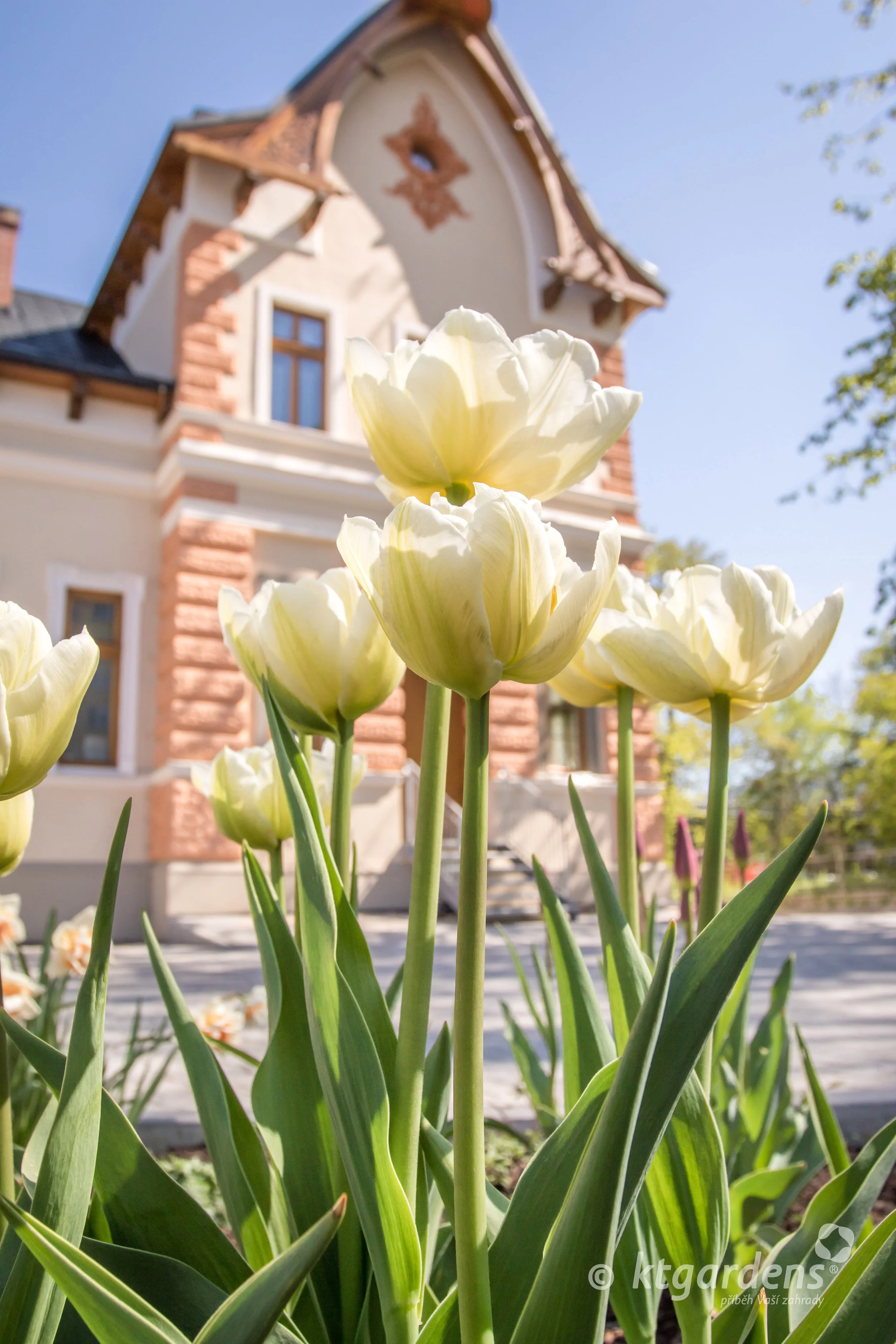 Výběr rostlin respektuje dobu, ve které byla vila postavena a tak v zahradě potkáte staré známé druhy rostlin - z jara kvetoucí magnolie, okrasné třešně, pěnišníky, narcisy i tulipány. V létě zahradu zdobí růže, hortenzie, pivoňky, orlíčky, plamenky a další trvalky. Rostliny jsou barevně laděny k fasádě domu a střídají se v kvetení v barvách od bílé, meruňkové, oranžové až po růžovou.